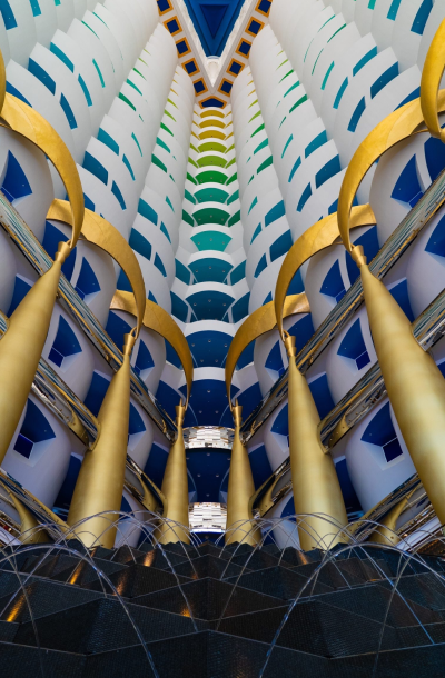 Explore the lavish interiors of the Burj Al Arab, showcasing its renowned splendor and architectural brilliance.